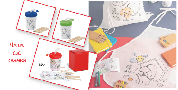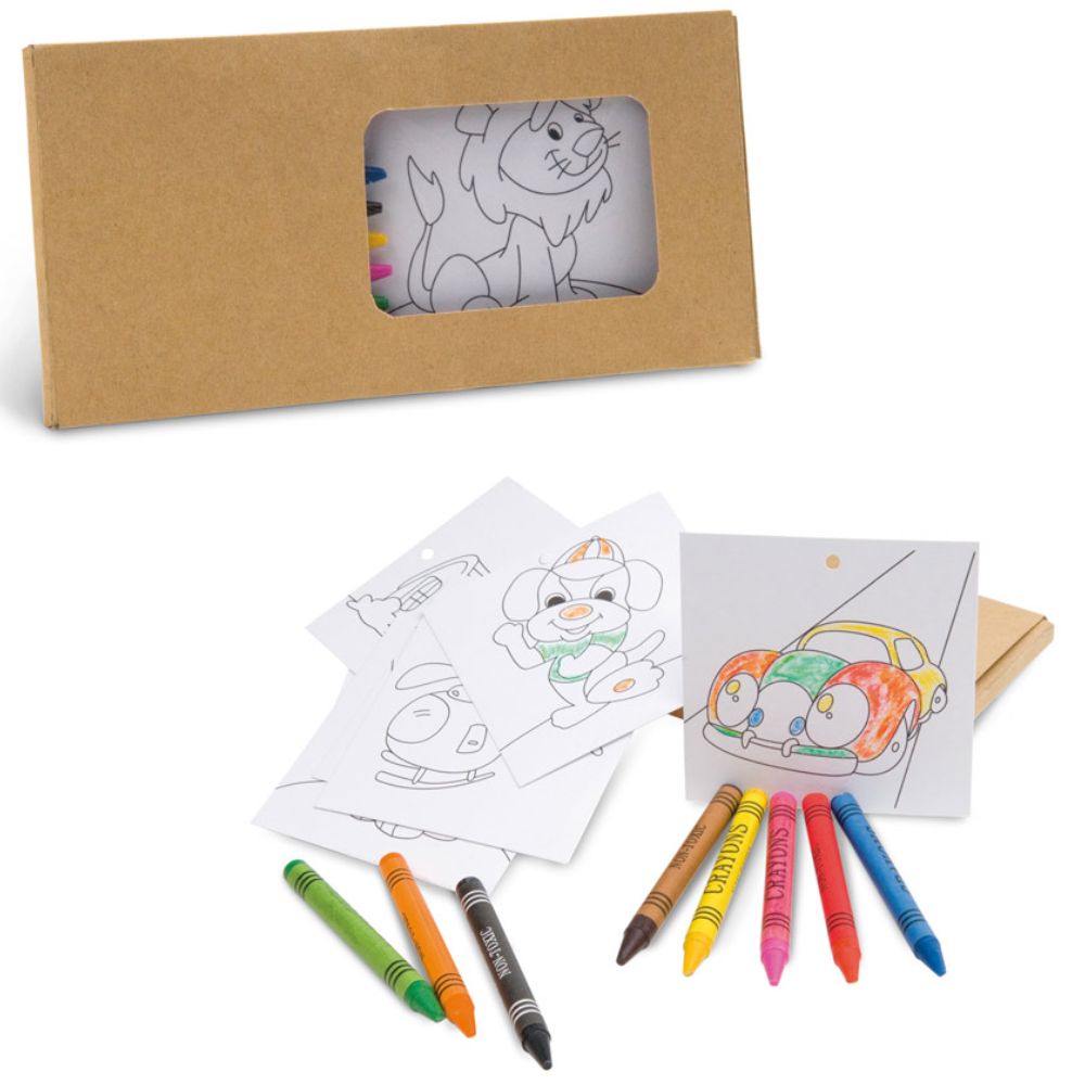- Включва 6 молива за оцветяване, 1 острилка и 15 карти с рисунки за оцветяване.