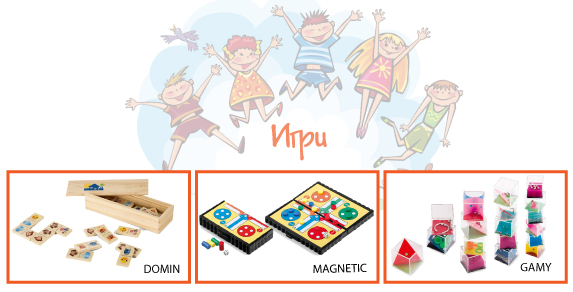- Няколко игри в кутия с размери 130x80x15 мм.