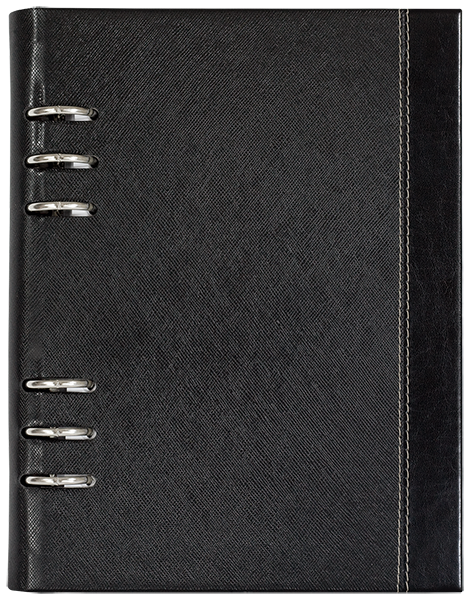 6 рингов сребърен механизъм, който се вижда през корицата.