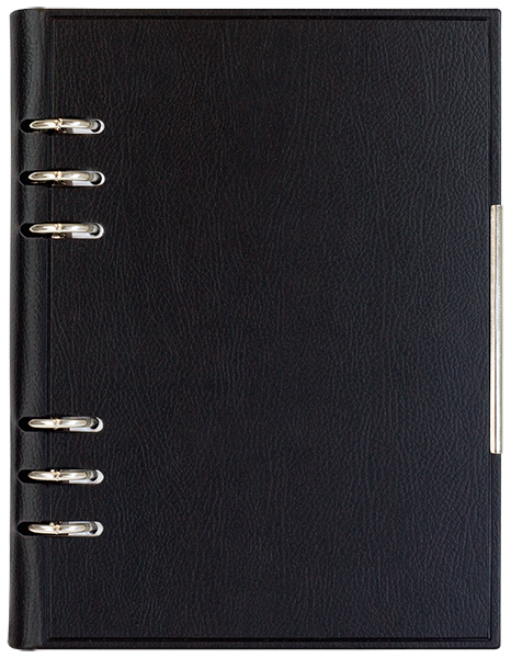 6 рингов сребърен механизъм, който се вижда през корицата.