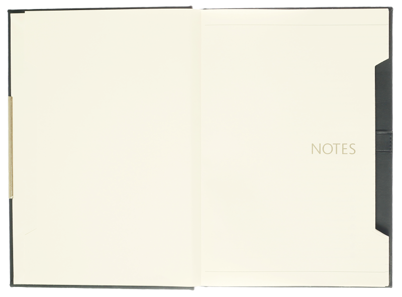 Индивидуална черна опаковка за всеки тефтер.