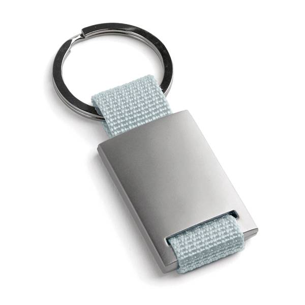 Ключодържател, изработен от метал и текстил.