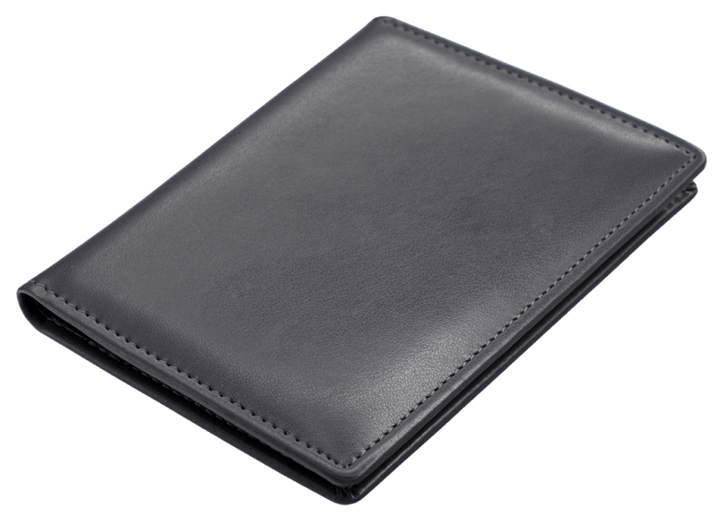 Калъф за паспорт и банкови карти с RFID защита в черен цвят.