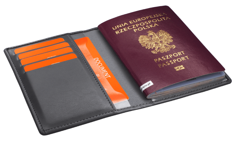Описание - 3 джоба за документи, 4 джоба за банкови карти, джоб за поставяне на паспорт