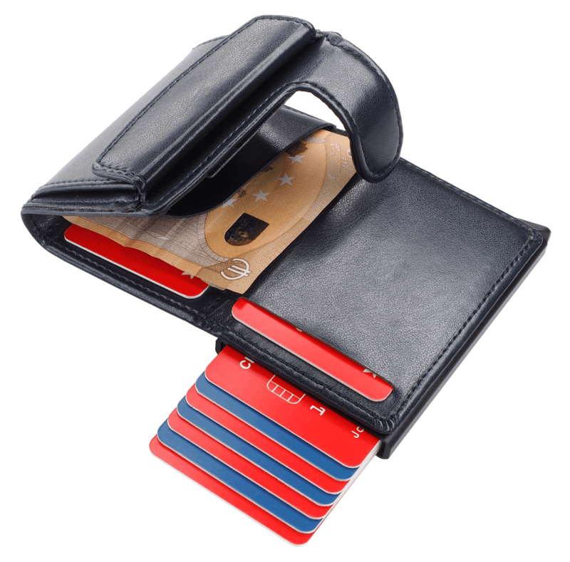 Портфейл за банкови карти с RFID защита в черен цвят.
