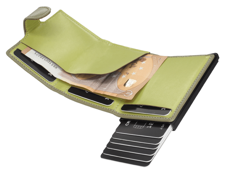 Портфейл за банкови карти с RFID защита в светло зелен цвят.