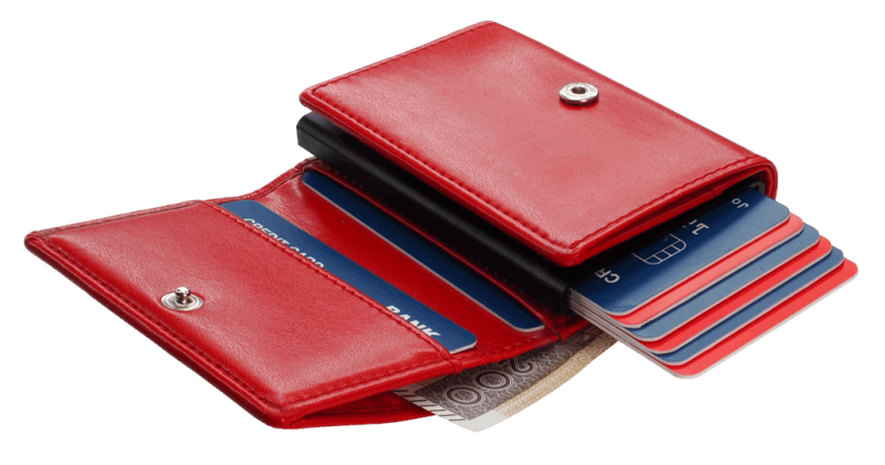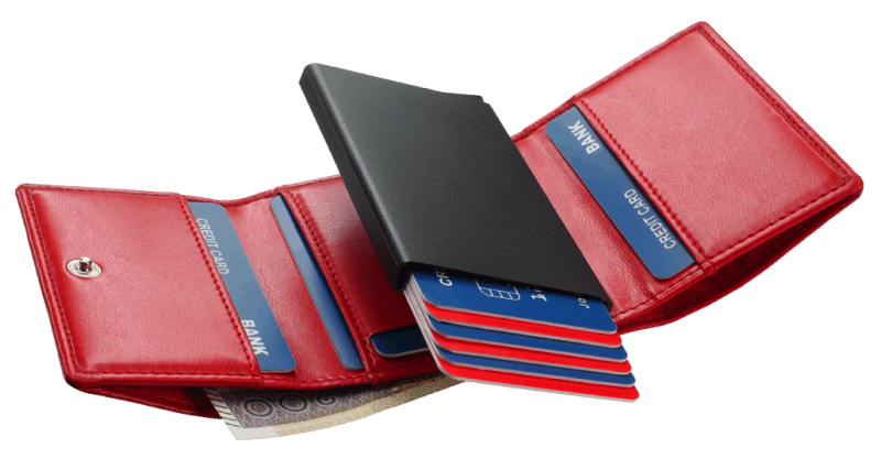 Портфейл за банкови карти с RFID защита в червен цвят.