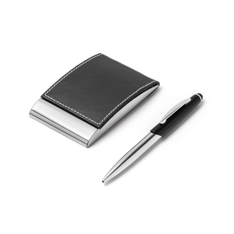 Комплект от метална химикалка с touch накрайник и визитник в черен цвят.