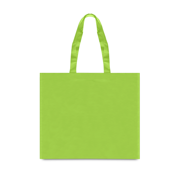 Чанта за пазар от ламиниран нетъкан текстил (110 g/m²) с дръжки 60 cm в светло зелен цвят.