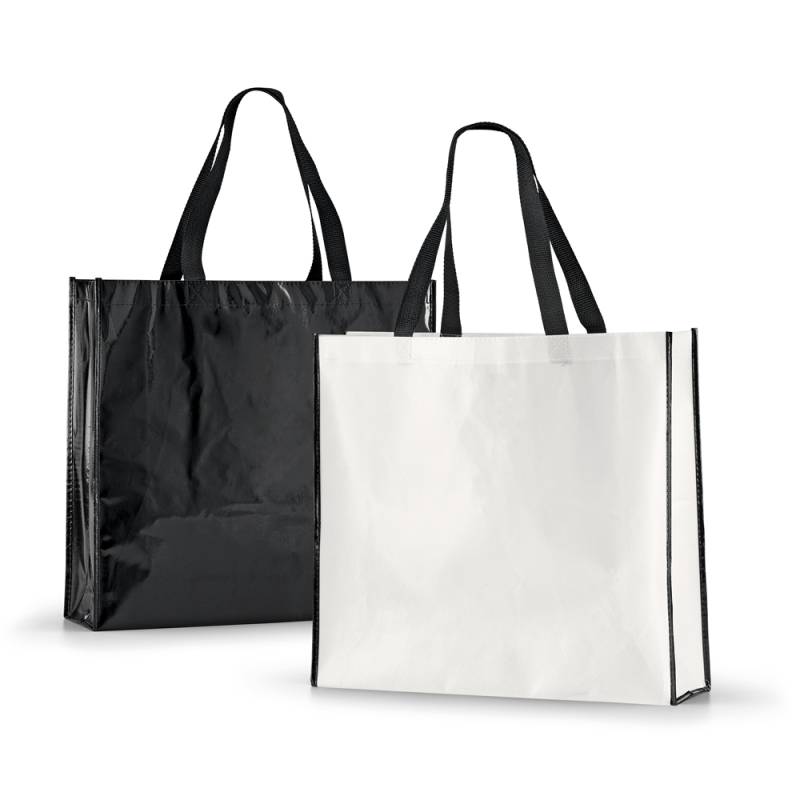 Нетъкана ламинирана чанта за пазар (120 g/m²) с текстилни дръжки 60 cm в черен цвят.