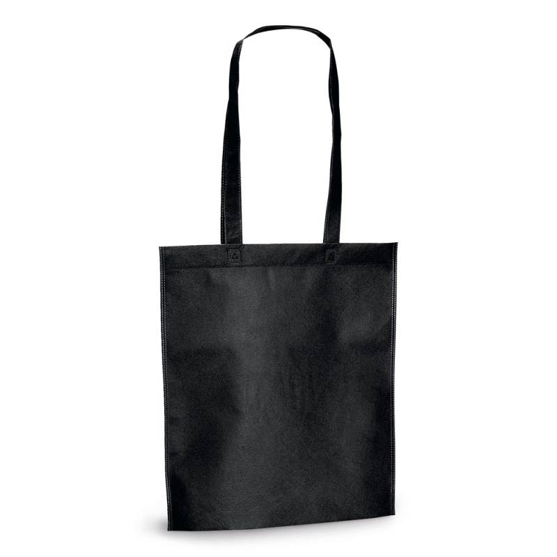 Чанта от нетъкан текстил (80 g/m²) с дълги дръжки 75 cm в черен цвят - термолепена.