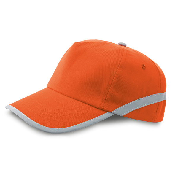 Полиестерна шапка с козирка и светлоотразителни елементи в оранжев цвят.