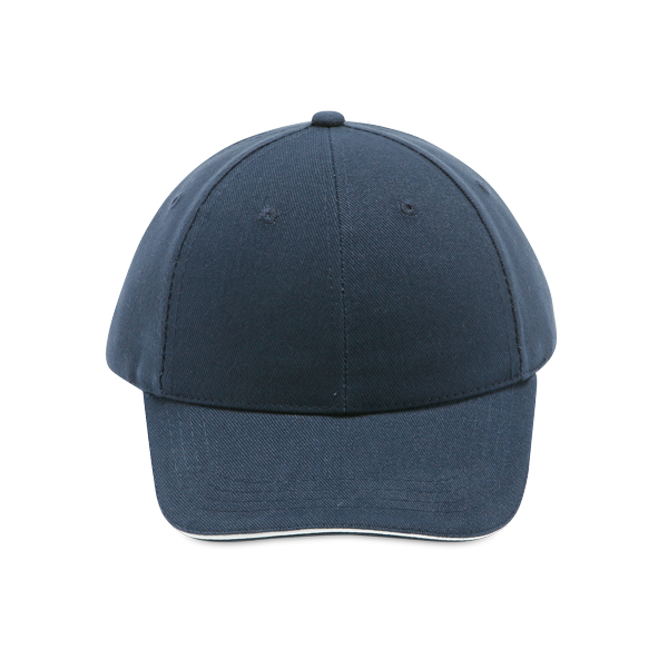 Шапка с козирка в тъмно син цвят.