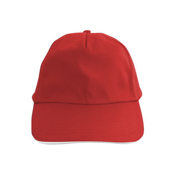 Шапка с козирка с велкро закопчаване в червен цвят.