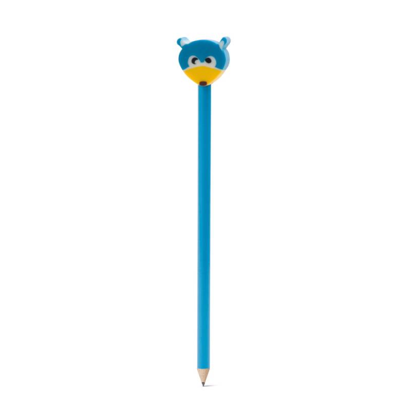 Подострен дървен молив с играчка гумичка в множество дизайни.