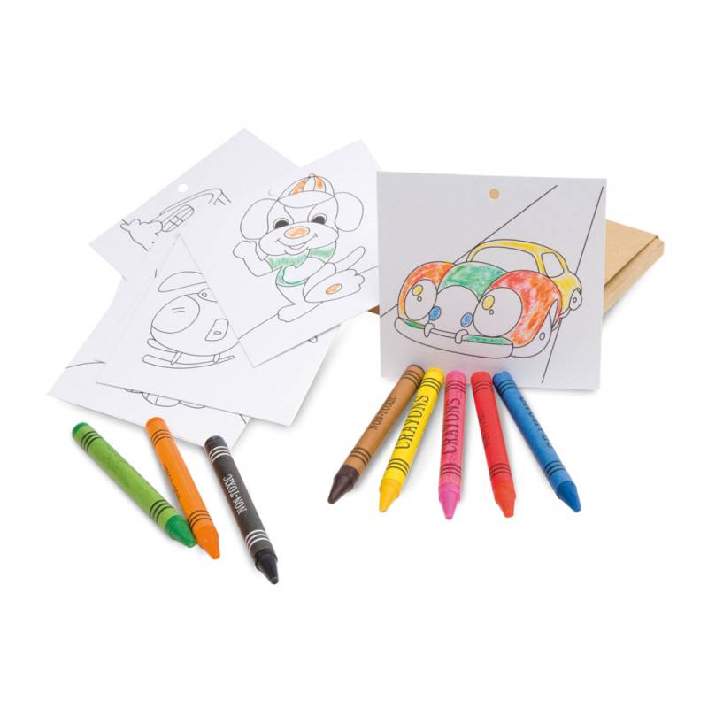 Включва 8 пастела и 8 картички с рисунки за оцветяване и окачване.