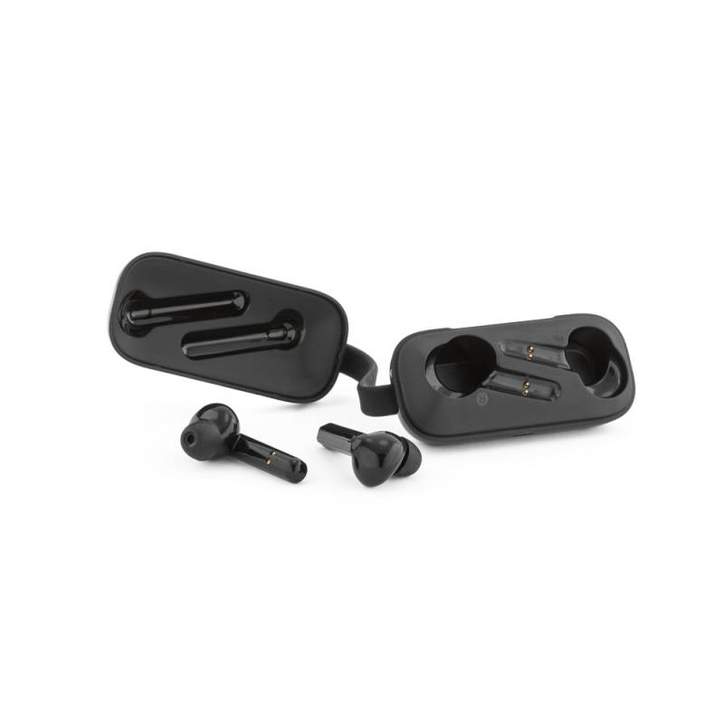 Кутията за зареждане, с батерия 240 mAh, също е от ABS и съдържа силиконова скоба,