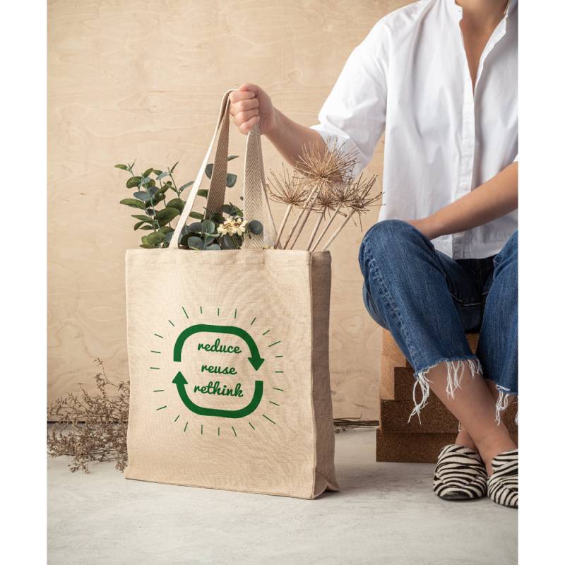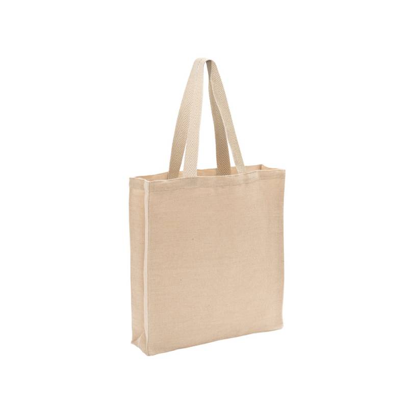 Чанта от джуко (275 г/м) с вътрешен джоб от 100% памук (120 г/м) с цип. Дръжки от двуцветна памучна лента.