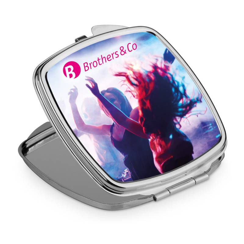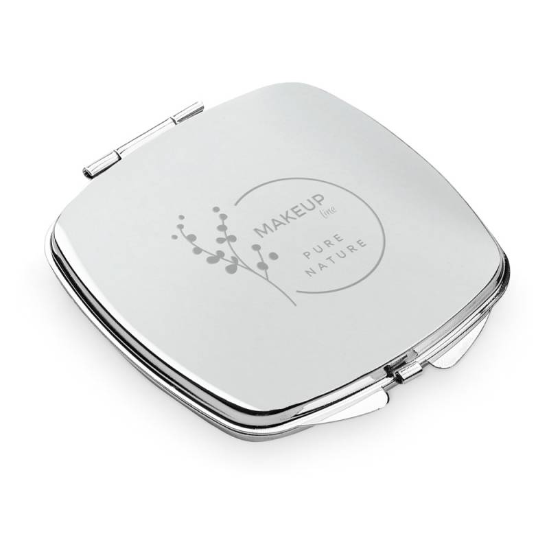 Двойно огледало за грим от метал, практично и компактно за използване.
