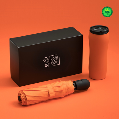 КОМПЛЕКТ СГЪВАЕМ АВТ. ЧАДЪР + ТЕРМОЧАША, ОРАНЖЕВ