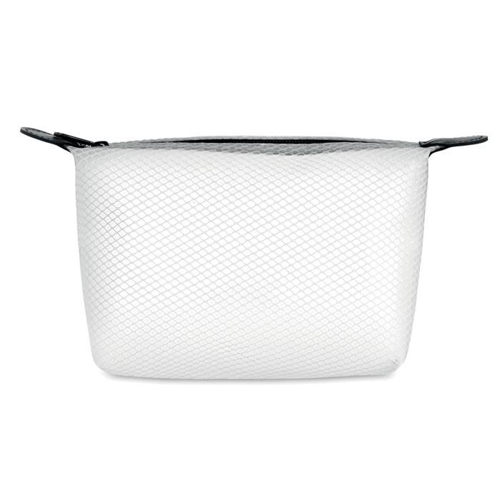 Козметична чантичка от прозрачна EVA мрежа с черен цип.