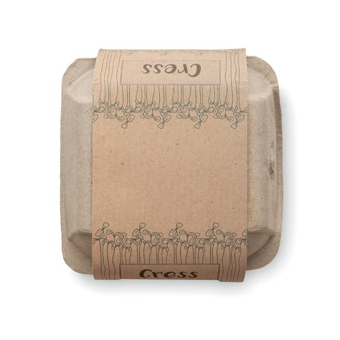 4 ТЕРАКОТЕНИ САКСИИ СЪС СЕМЕНА ОТ КРЕСОН В КАРТОНЕНА КУТИЯ ЗА ЯЙЦА С ТАБЛЕТКИ С ПОЧВА.
