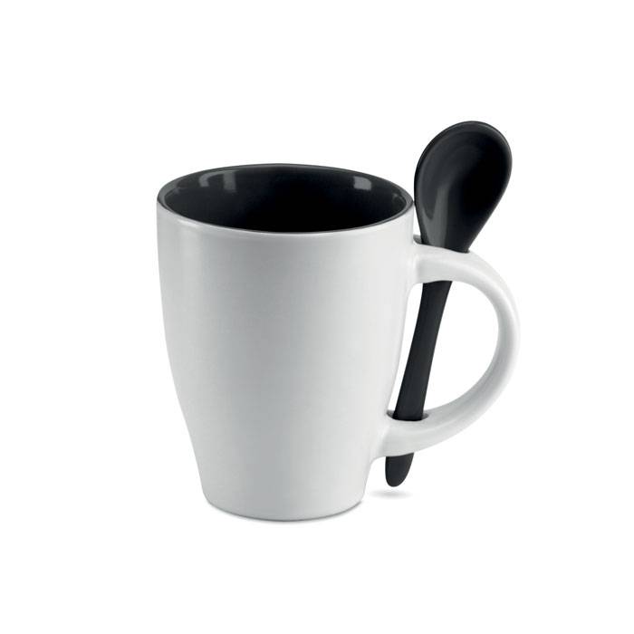 КЕРАМИЧНА ЧАША С ЛЪЖИЦА DUAL, БЯЛА+ ЧЕРНО