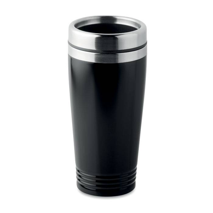 Двустенна чаша за път от неръждаема стомана с черен PP капак.
