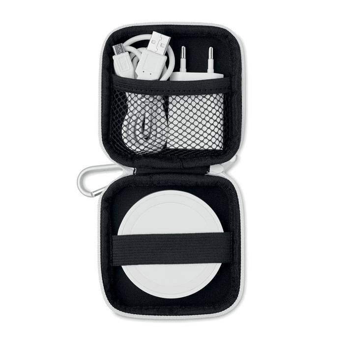 Комплект с безжично зарядно от ABS. Предлага се в EVA/PU торбичка.
