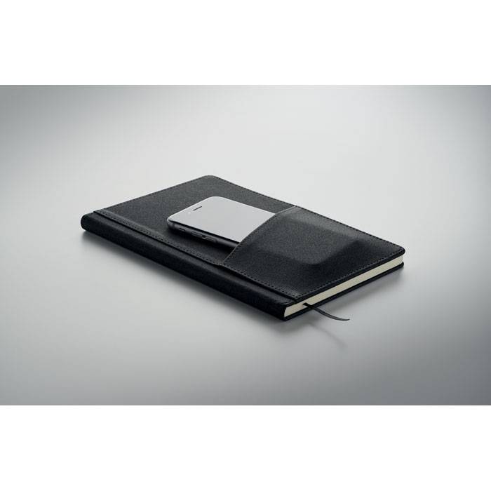 Тефтер A5 с твърда PU корица и преден джоб за телефон.