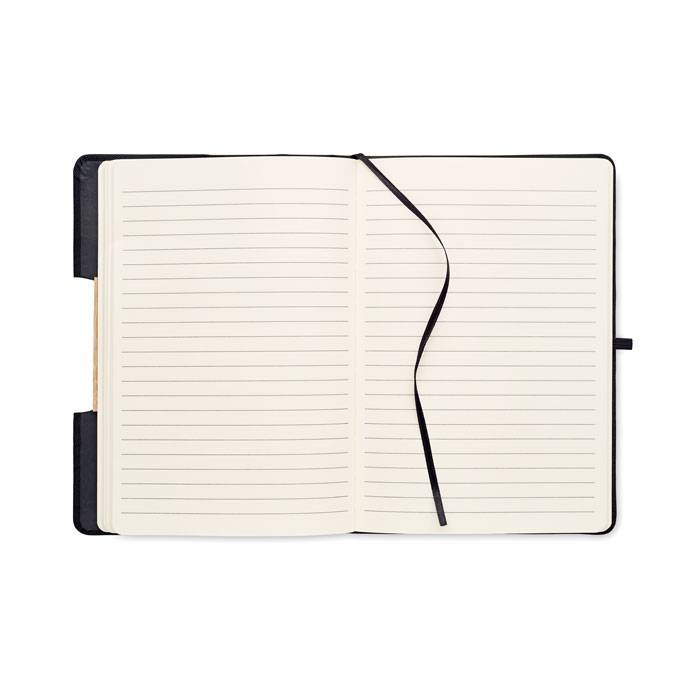 Тефтер A5 с твърда корица 600D RPET с бамбуков детайл.